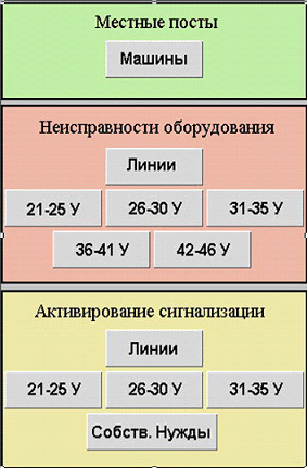 - фрагменты виртуальных панелей управления технологическим оборудованием станции – “Неисправности оборудования”. На этих фрагментах инструктор может контролировать состояние и параметры технологического оборудования, а также задавать их неисправности;