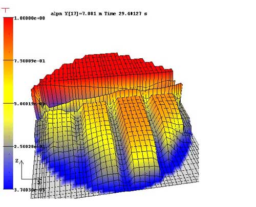 - Пакет программ выполняет вывод полей 3-D матриц исходных данных для препроцессорной графической обработки (диагностика 3-D массивов коэффициентов пористости, гидравлических сопротивлений, гидравлических диаметров).
